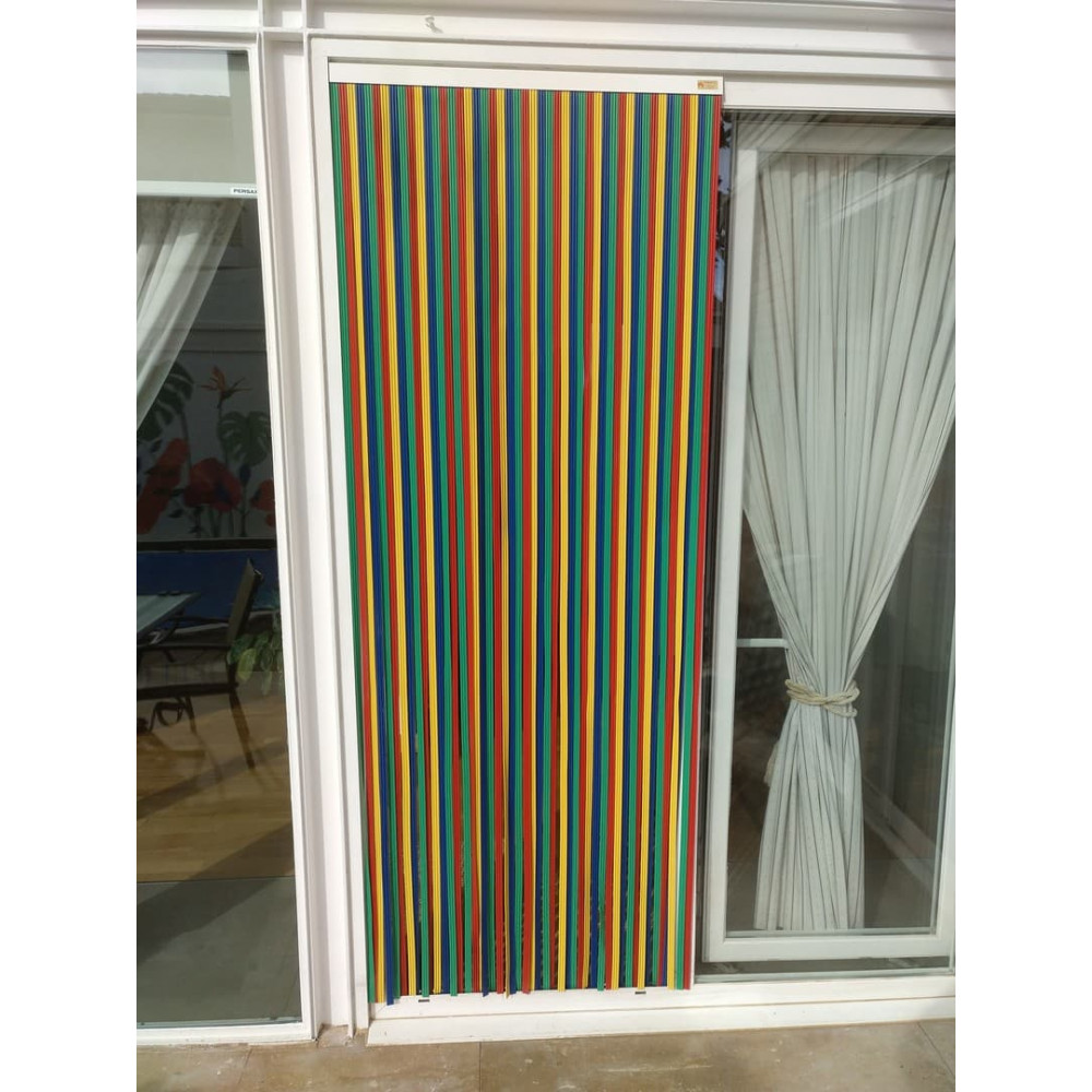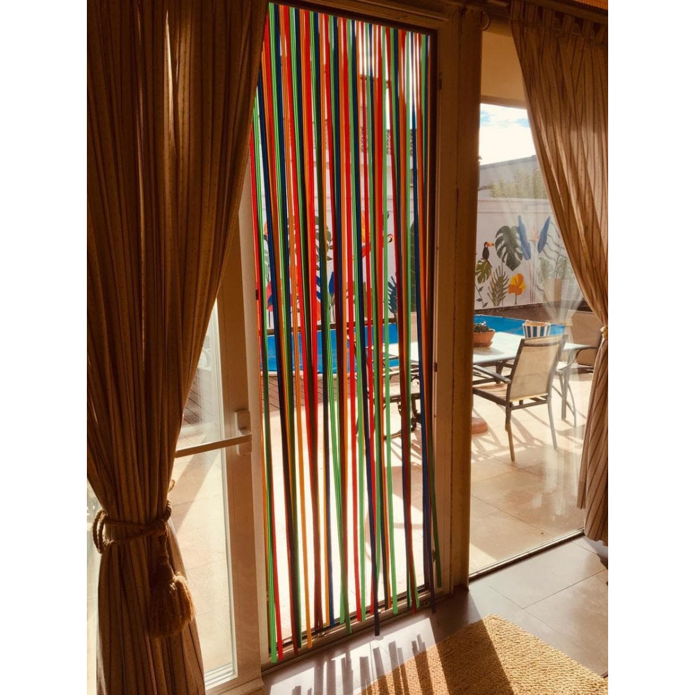 La cortina de cinta de PVC para puertas exteriores antimoscas a medida modelo NIZA fabricada de alta calidad, flexible, fuerte y ligera, que protegerá su hogar de cualquier tipo de insecto, especialmente las moscas. Resistentes al viento, a la lluvia y a las altas temperaturas.