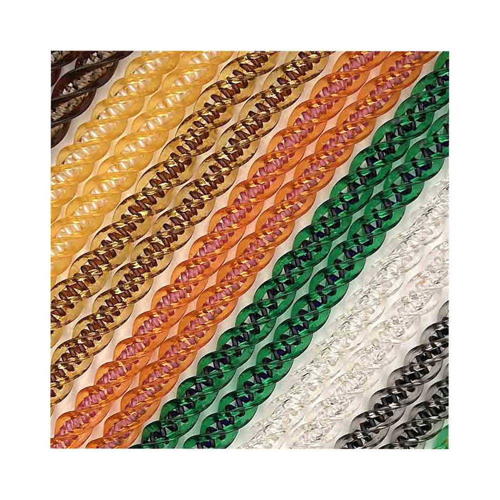Textura: Tiras helicoidales de colores opacos, transparentados y cristal que